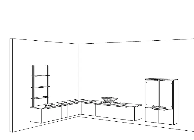 * inkl.: LED-Beleuchtung unterhalb aller Schränke